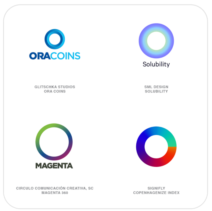 正是使用漸變或半色調(diào)效果真正使這種形狀躍居流行堆的頂部。是的,戒指仍然傳達著永恒、統(tǒng)一、或循環(huán)。它標志著完成并且是不間斷的,中間的洞可以傳送通道或窗口或門戶。所有這些含義都是正確的,但通過對表面進行處理,呈現(xiàn)出一種新的象征意義。這不僅僅是一個循環(huán),而是一個從冷到熱,或從黑夜到白晝,或適當遮蔽的環(huán)具有尺寸的循環(huán)。漸變可以在環(huán)的周邊徘徊或散布在整個面部,甚減少到內(nèi)部的深淵。雖然如果你的名字以 O 開頭,它會膨脹,但這種形狀所蘊含的力量遠遠超過了作為字母組合的單純聯(lián)想。