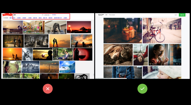 500px上的攝影作品質(zhì)量比Pexels更高,涉及的主題更加廣泛。