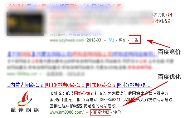 這個很好區(qū)分,排列在百度競價下面的網(wǎng)站都是做網(wǎng)站優(yōu)化的。比較的區(qū)別就是顯示的網(wǎng)址后面會出現(xiàn)“百度快照”字樣。