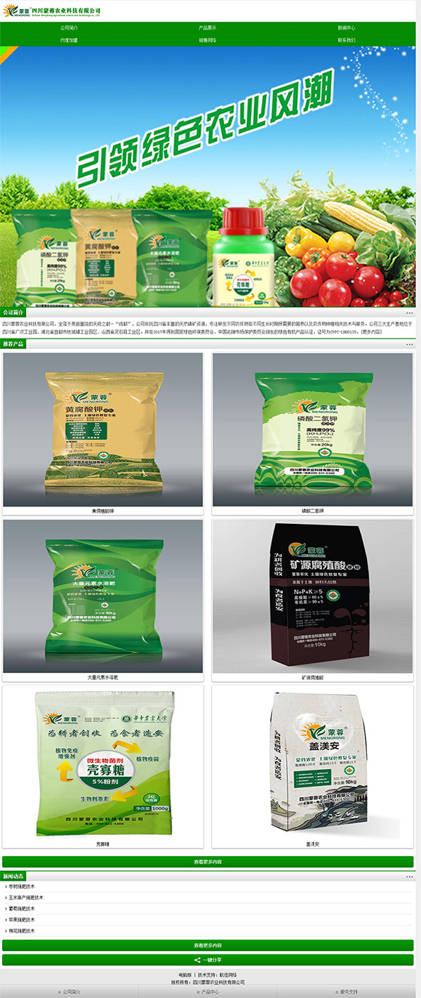 感謝四川蒙蓉農(nóng)業(yè)科技有限公司對(duì)我公司的信任,將網(wǎng)站建設(shè)、公眾微信開(kāi)發(fā)委托我公司,四川蒙蓉農(nóng)業(yè)科技有限公司,坐落于美麗富饒的天府之都-“成都”,公司依托四川省豐富的天然磷礦資源,專(zhuān)注研發(fā)不同農(nóng)作物在不同生長(zhǎng)時(shí)期所需要的營(yíng)養(yǎng)以及農(nóng)作物種植相關(guān)技術(shù)與服務(wù)。公司三大生產(chǎn)基地位于四川省廣漢工業(yè)園、湖北省宜都市枝城鎮(zhèn)工業(yè)園區(qū)、山西省靈石縣工業(yè)區(qū)。并在2017年得到國(guó)家綠色環(huán)保委員會(huì)、市場(chǎng)保護(hù)委員會(huì)頒發(fā)的綠色產(chǎn)品認(rèn)證,證號(hào)為CPPC-LH69135。
