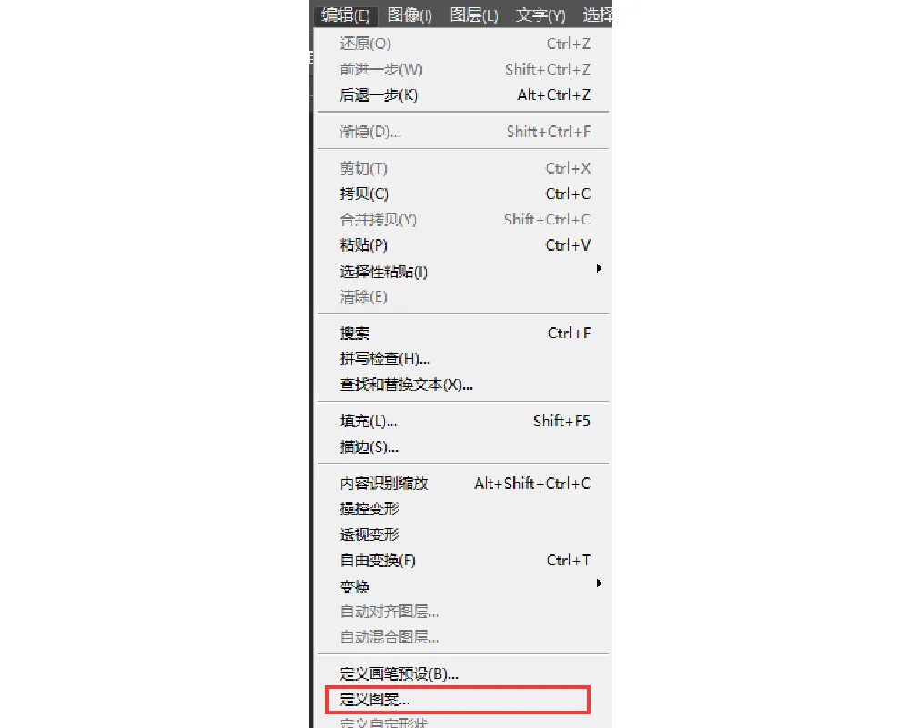 然后選擇“編輯——定義圖案”即可。