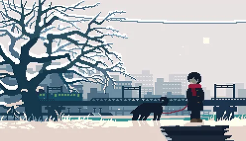 下面這個作者的畫面看起來既干凈又保留了像素風(fēng)的特點,就是對線條的把控比較準確。