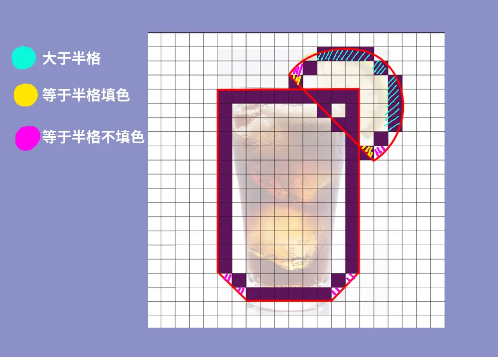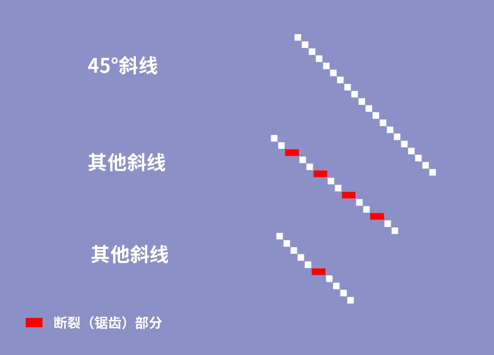 斜線:可以分為45°斜線和其他斜線。其中紅色的部分稱為鋸齒。
