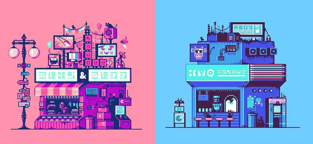當然,除了記錄生活及風(fēng)景外,像素風(fēng)也可以與類似于2.5D插畫,UI圖標制作,人像插畫等結(jié)合,形成更有趣的像素風(fēng)插畫,簡直是萬物皆可像素畫~