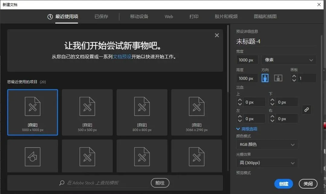新建文檔新建一個1000*1000像素的畫布,顏色模式為RGB。