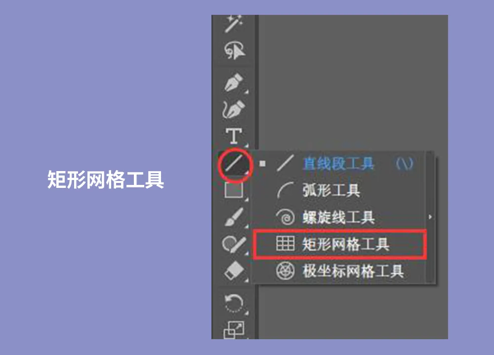 繪制網(wǎng)格找到「直線工具」,將鼠標光標放置在上面,鼠標右鍵,在彈出的窗口中選擇「矩形網(wǎng)格工具」。