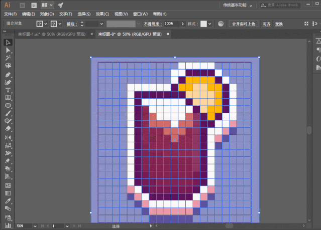 首先,我們先說說AI軟件。這就到了我的主場了。AI畫像素的優(yōu)點是不受畫布的限制,作難度比較低。但是由于AI繪制像素風(fēng)是用「矩形網(wǎng)格工具」點出來的,個人覺得還是用在比較小的插畫繪制上,例如像素風(fēng)圖標,像素風(fēng)卡通形象。